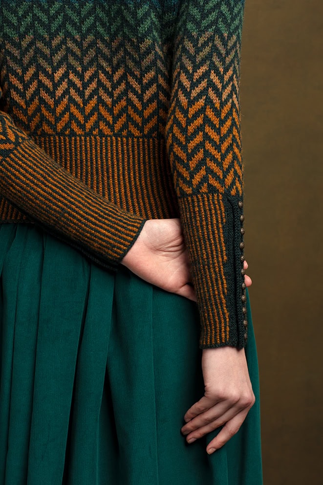 The Heroine Collection hand knitwear design by Alice Starmore, made in Hebridean 2 & 3 Ply for Virtual Yarns